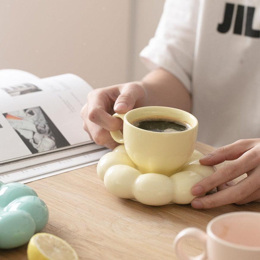 Ceramiczna filiżanka do kawy z ozdobnym spodkiem