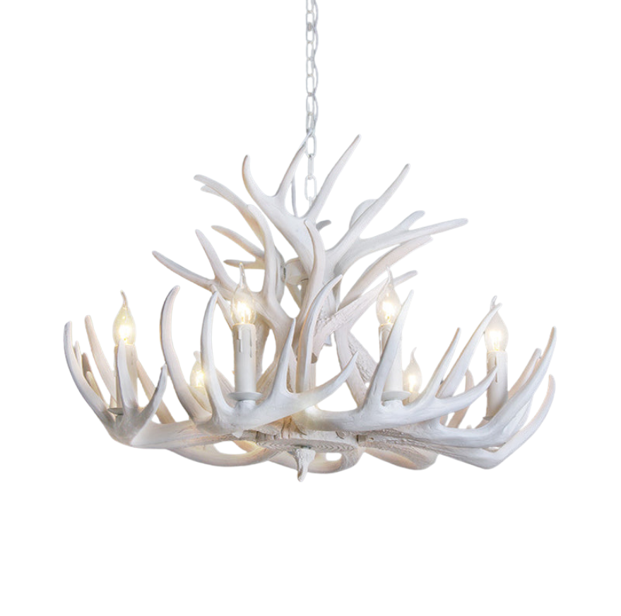 Biała Żyrandol z Rogami Jelenia | Rustykalna Lampa Sufitowa z Żywicy